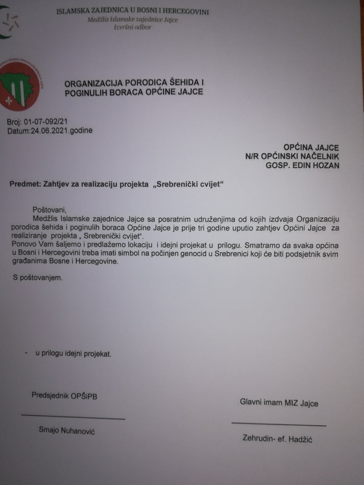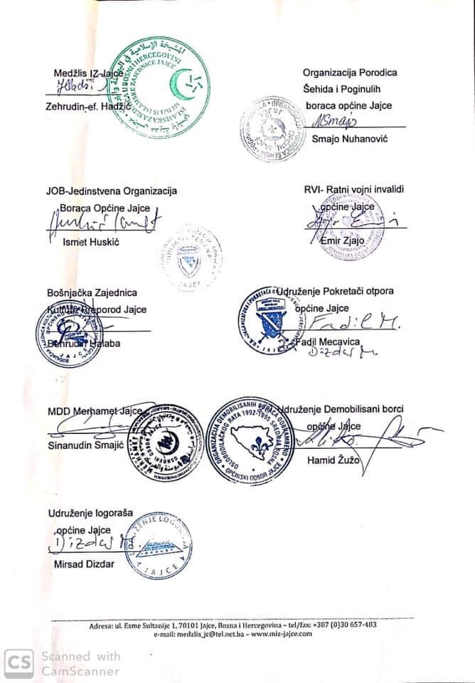 “Nakon što je formirano Općinsko vijeće Jajce na primjeru ove inicijative vijećnici Bošnjaci imaju priliku dokazati svoju empatiju spram žrtava genocida, vijećnici Hrvati na čelu sa predsjedavajućim, svoj altruizam spram svojih komšija, a ostali vijećnici svoju neokomunističku posvećenost ideji bratstva i jedinstva”, poruka je potpisnika inicijative upućene Općinskom vijeću, glavnog imama MIZ Jajce, Zehrudina ef.Hadžića.