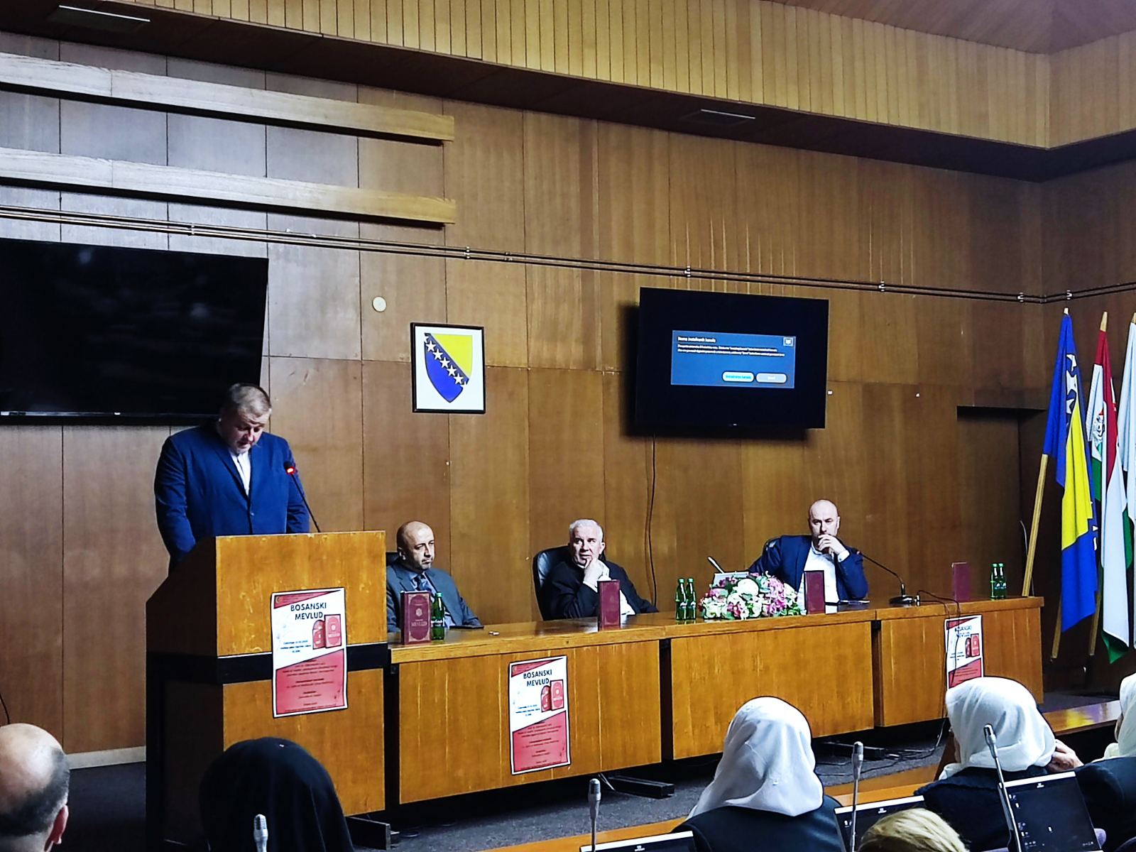 Osim samog autora, dr. Džemaludina Latića, prisutnima su se u ulogama promotora obratili i glavni imam MIZ Jajce, Zehdrudin-ef. Hadžić i predsjednik glavnog odbora Udruženja ilmijje Islamske zajednice u Bosni i Hercegovini, Nesib-ef. Hadžić. Zehrudin-ef. Hadžić govorio je o neophodnosti slijeđenja sunneta za ispunjeniji život vjernika i prosperitet zajednice općenito, te o potrebi navikavanja učenja mevluda još od mektebskog perioda jer se i kroz stihove mevluda upoznajemo sa poslanikom, volimo ga i sunnet učimo i živimo. Nesib-ef. Hadžić govorio je o suradnji autora Latića i Udruženja ilmijje, a za Bosanski mevlud je rekao da je djelo u koje su utkani neosporno znanje i neizmjerna ljubav.