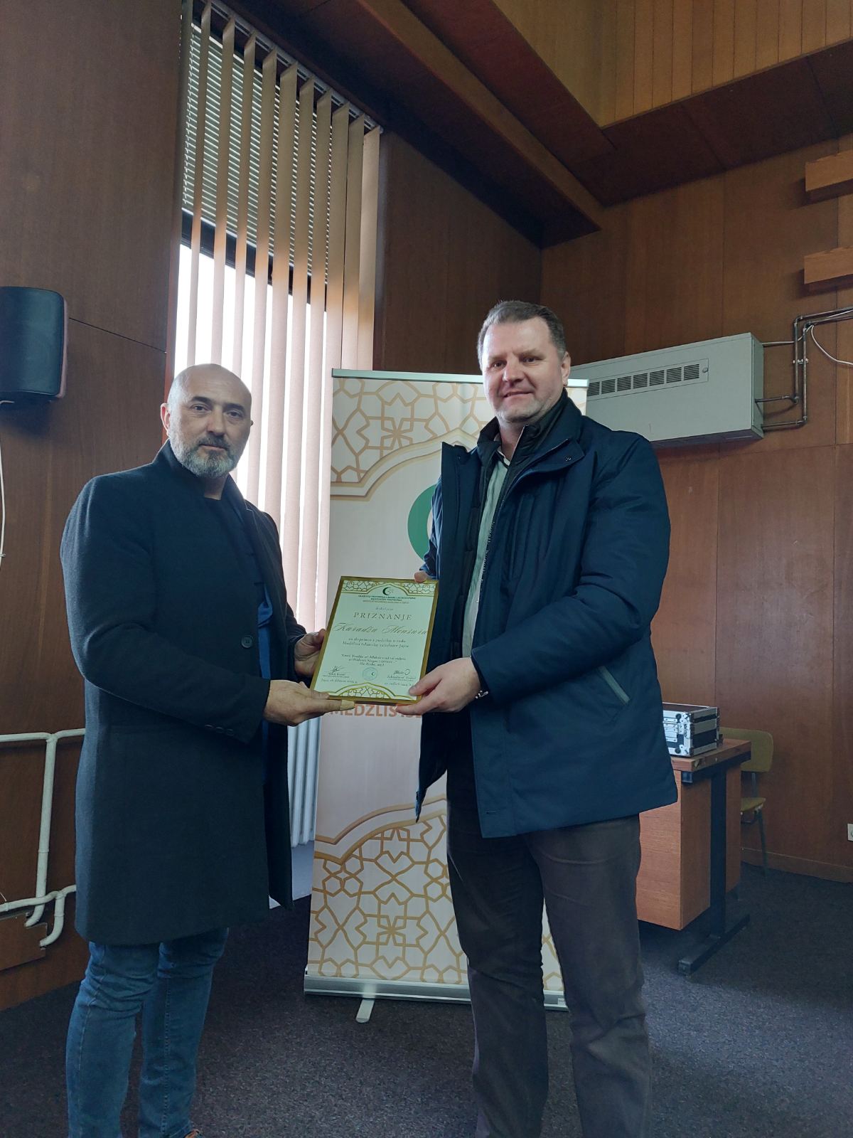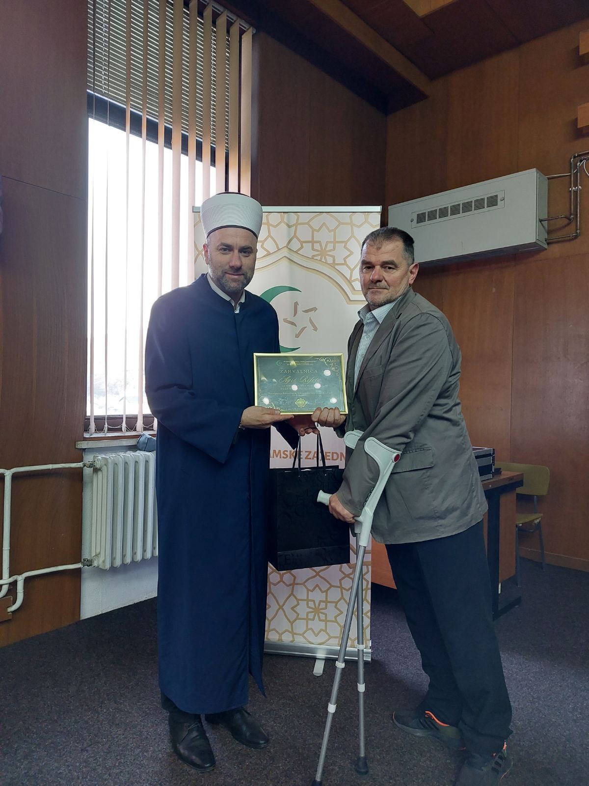 Zahvalnice za pomoć i podršku projektima MIZ Jajce uručio je glavni imam Zehrudin-ef. Hadžić Agić Rifetu i Edini Kliko , u čije ime je zahvalnicu primio dr. Denis Zjajo.