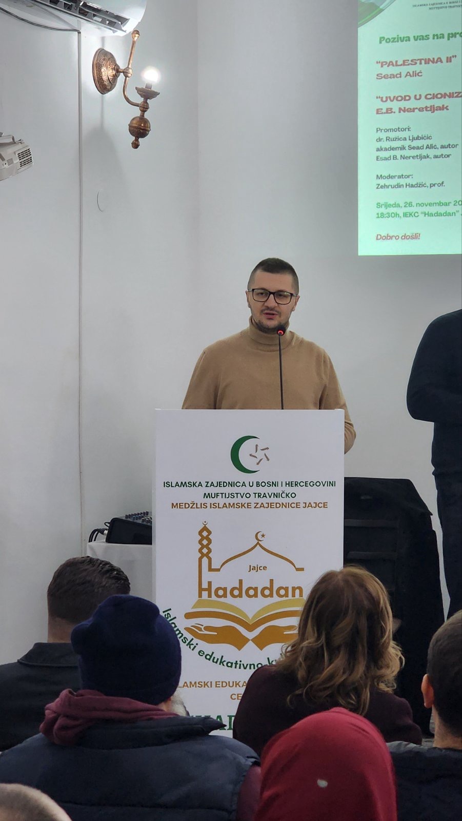 U organizaciji Mreže mladih Muftijstva travničkog za Mreže mladih medžlisa Jajce, Donji Vakuf, Bugojno i Gornji Vakuf u srijedu, 26. novembra 2025. godine, u IEKC “Hadadan” Jajce održana je promocija knjiga “Palestina II” akademika Seada Alića i “Uvod u cionizam” autora Esada B. Neretljaka.